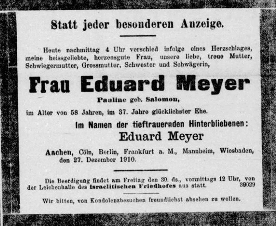 Quelle: Aachener Anzeiger 30.12.1910, Fundstelle: Familienbuch Euregio