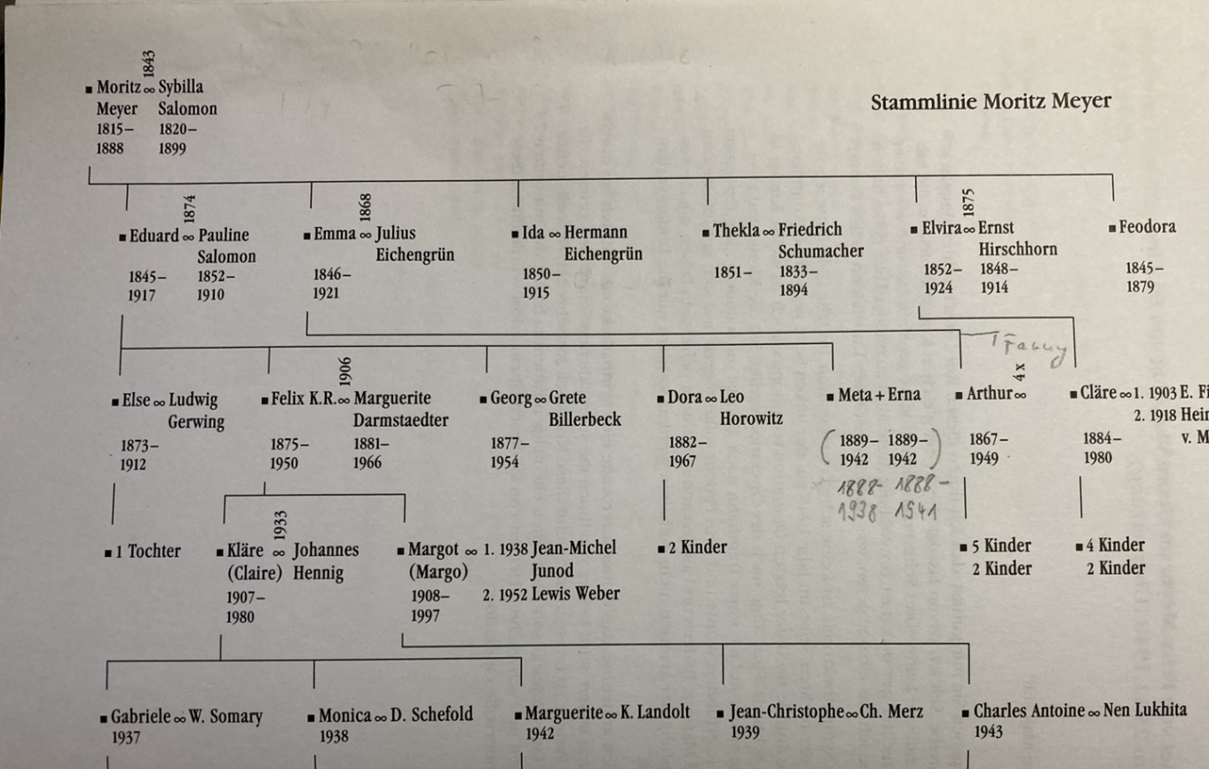 Hier zur Veranschaulichung die Stammlinie Moritz Meyer (DNB), abgedruckt in Mettenheim