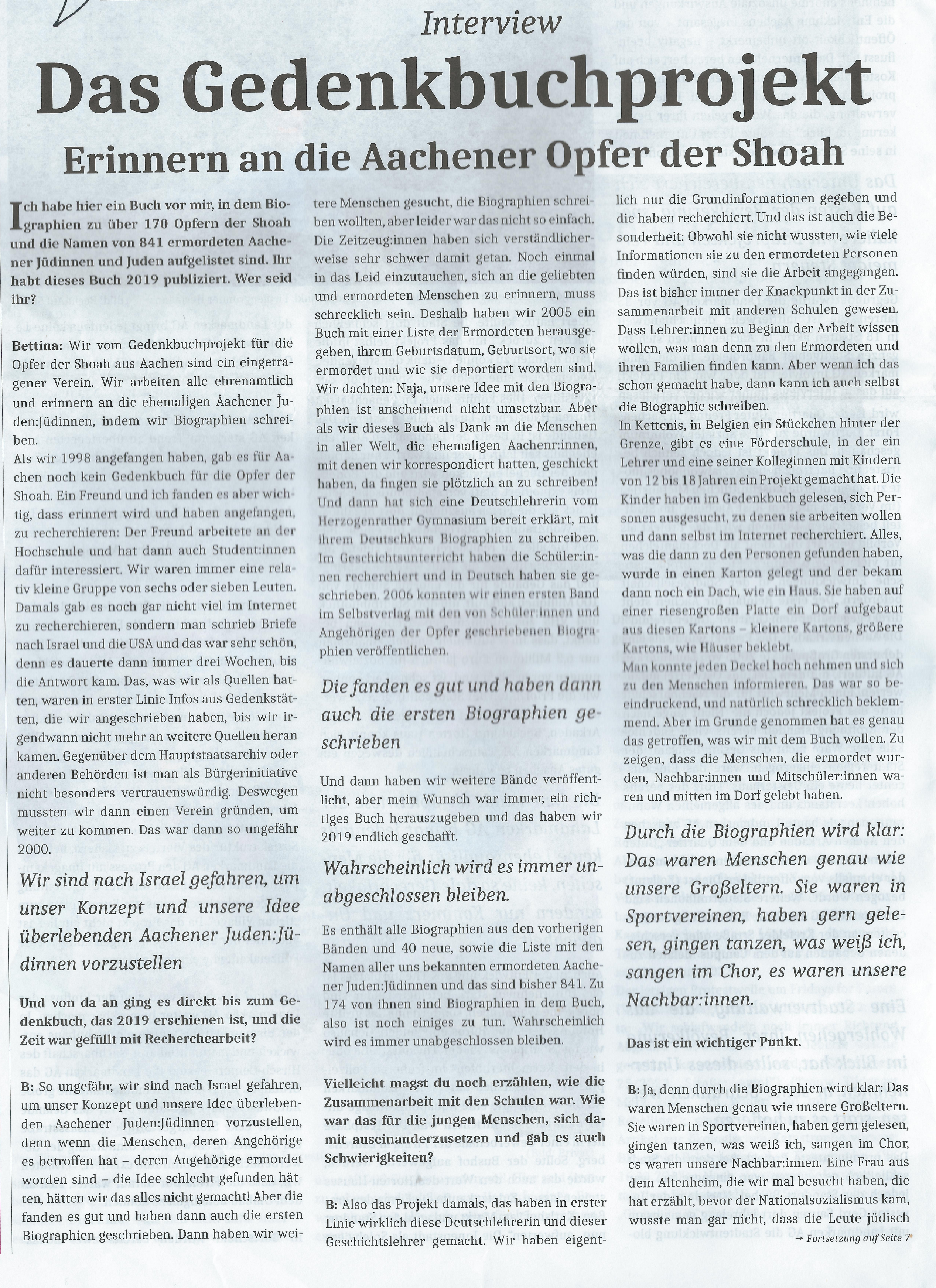 Das Gedenkbuchprojekt - Interview mit Bettina Offergeld